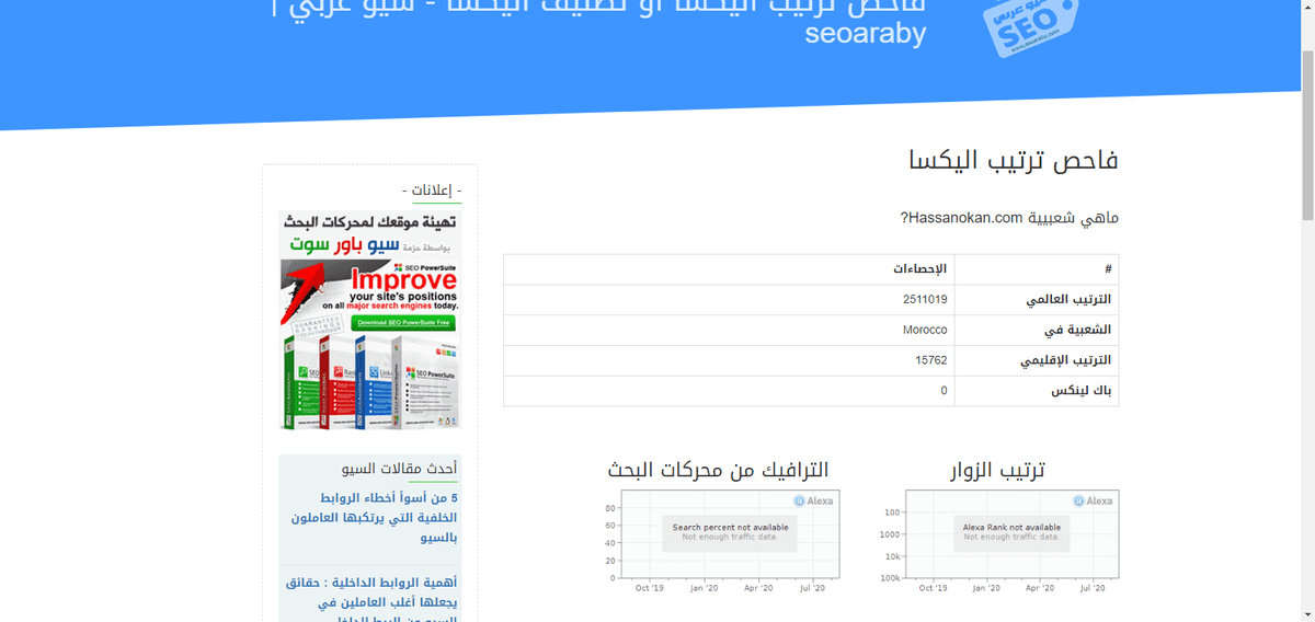 الترتيب العالمي 2507232 الشعبية في Morocco الترتيب الإقليمي 15759 باك لينكس 0