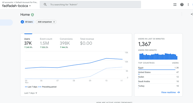 هناك لوحة تحكم خاصه بالمستخدمين و الموقع مرتبط ب google analytics و نملك صفحة فيسبوك خاصة