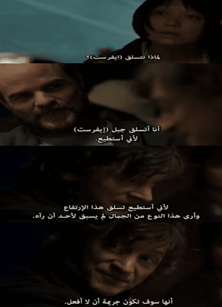 الفيلم به لقطات تحبس الأنفاس في مناطق متوسطة العلو و أخرى عالية جدا لذا إن كنت مصابا بفوبيا المرتفعات – مثلي – فقد تشعر ببعض الدوار و تفضل مشاهدته و أنت منبطح بالأرض تتحسس الأرضية كل خمس دقائق في صورة بمنتهى الغرابة D: