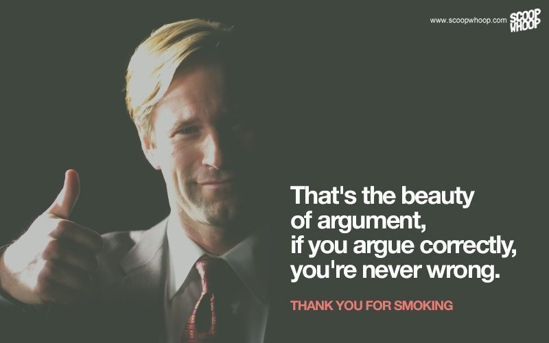 Thank you for smoking، ثاني فيلم أشاهده من نوع الكوميديا السوداء بعد فيلم ديكابريو The Wolf of Wall Street، من بطولة الممثل أرون إكهارت المشهور بدوره كرئيس في فيلمي Olympus Has Fallen وLondon Has Fallen.