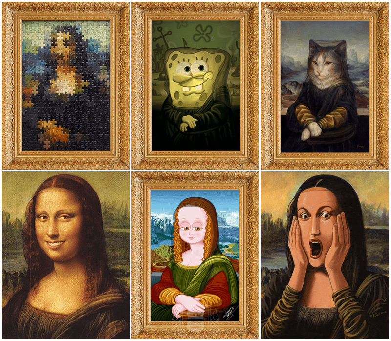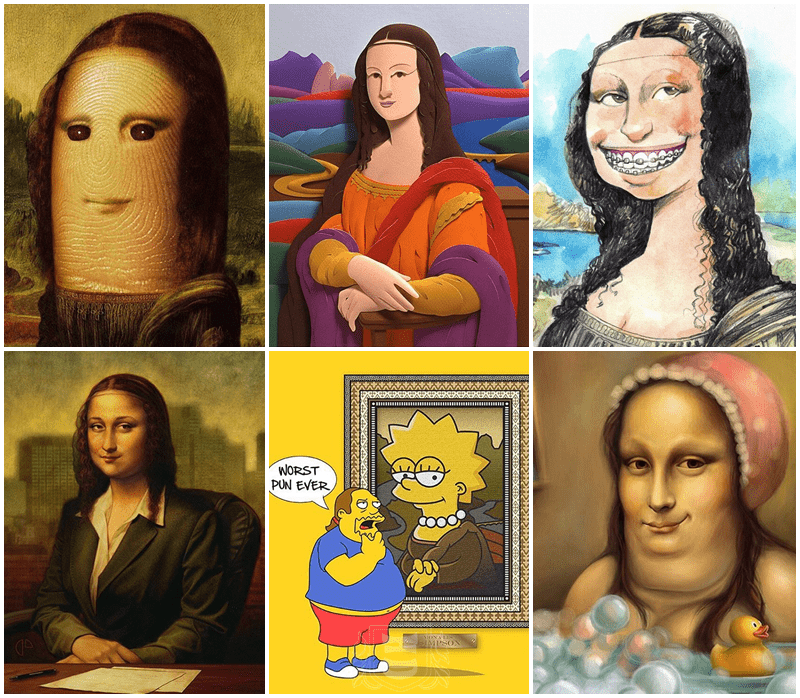 مع ظهور لوحات أخرى شهيرة, قام الفنانون مؤخراً بمحاولة السخرية من الموناليزا أو رسمها بشكل آخر من خلال دمجها مع تلك اللوحات أو الشخصيات..