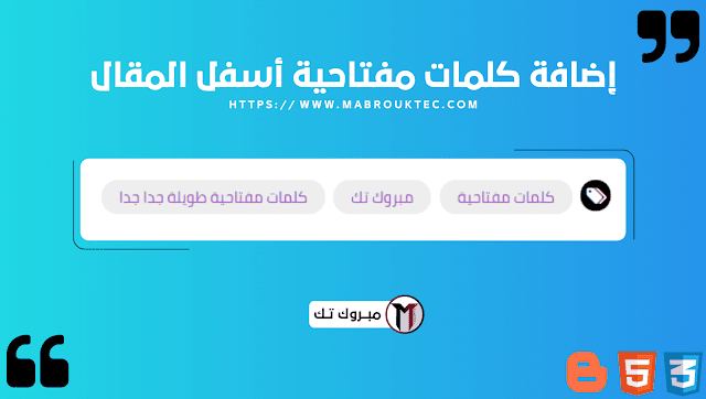 السلام عليكم ورحمة الله وبركاته , كيف حالكم عائلتنا الكريمة ؟ اتمنى ان تكونوا بألف خير . أثناء تصفحي للفيسبوك وجدت بالصدفة منشورة يسأل عن اضافة كلمات مفتاحية في اسفل الموضوع ورغم ان كل التعليقات كانت فقط تقول ان الاضافة موجودة في الووردبريس ولكن كما تعرفونني لا يوجد مستحيل على مدونتنا تابعو شرح تركيب هذه الاداة ...
