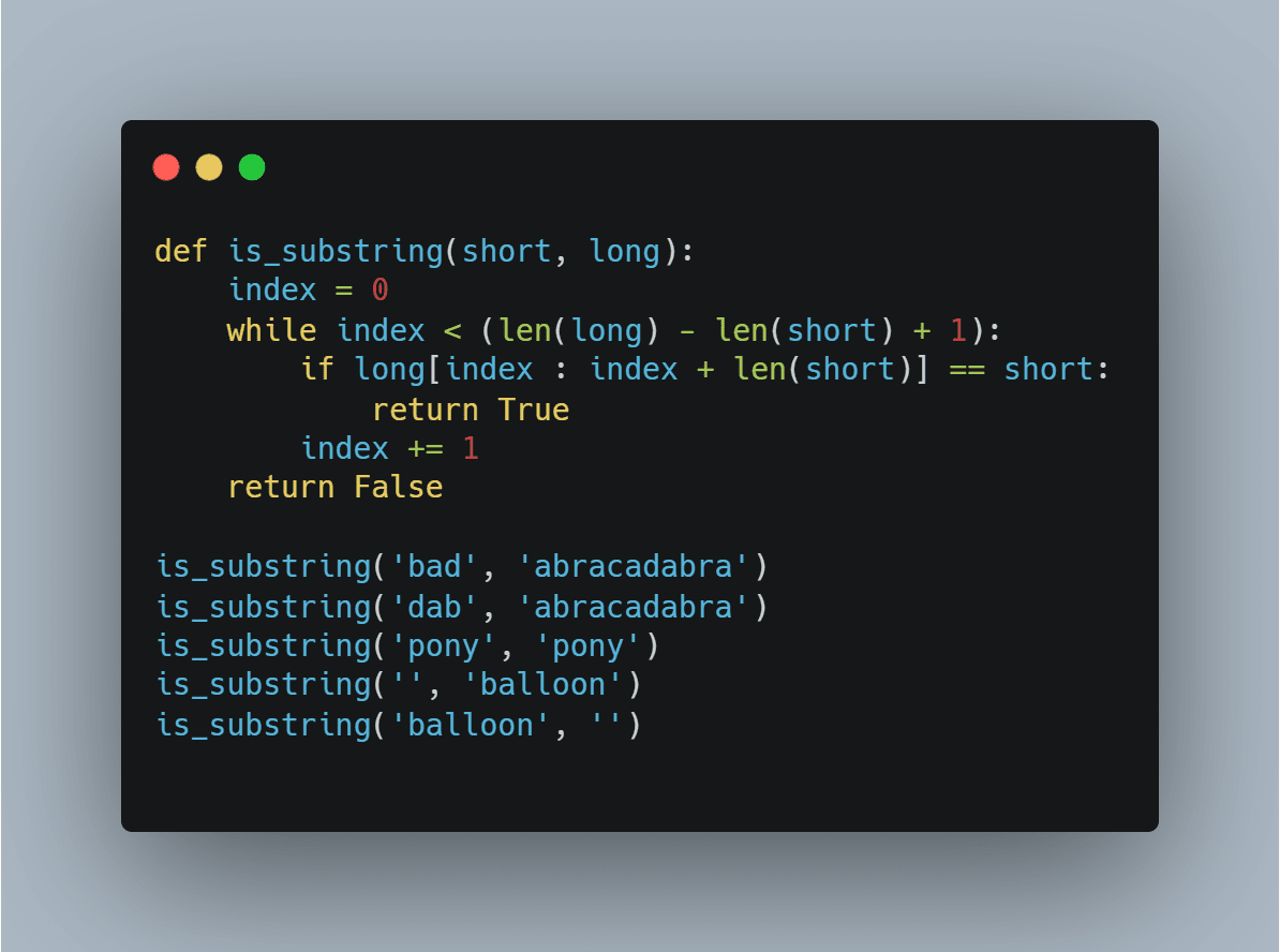print(is_substring('',''))أو الحل الثاني بدلا reutrn التي داخل الدالة
