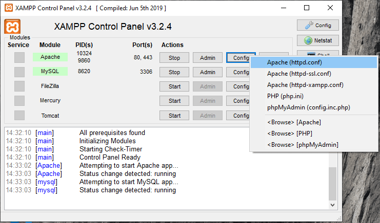 Apatche و mysql يعملان لكن عند طلب اي صفحة في localhost