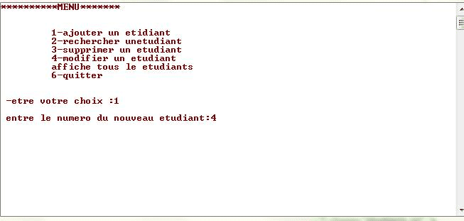 ولكن لما لا تقسم الكود و او تجرب دالة دالة حتى ترى خطأ في اي دالة حسب الصورة اعتقد انه في دالة ajouteretudiant