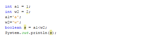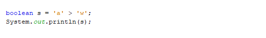 - نعم كل رمز يناظره قيمة تسمى "ASCII Code" والمقارنة في السؤال الذي طرحته تتم على قيمة الـ ASCII Code للرموز، تلك العمليات المتحكم بها هو المترجم للغة ولفهم الناتج علينا تتبع الطريقة التي يعمل بها المترجم الخاص باللغة (بإصداراته) لمعرفة كيفية تعامله مع تلك الأمور، لهذا تجد نواتج مختلفة لنفس الأكواد عند ترجمتها بمترجمات مختلفة مثال على ذلك كودك الساابق يعطي النتيجة false للحالة الثانية وهو الناتج المنطقي المتوقع، ستجد الكود على هذا الرابط: