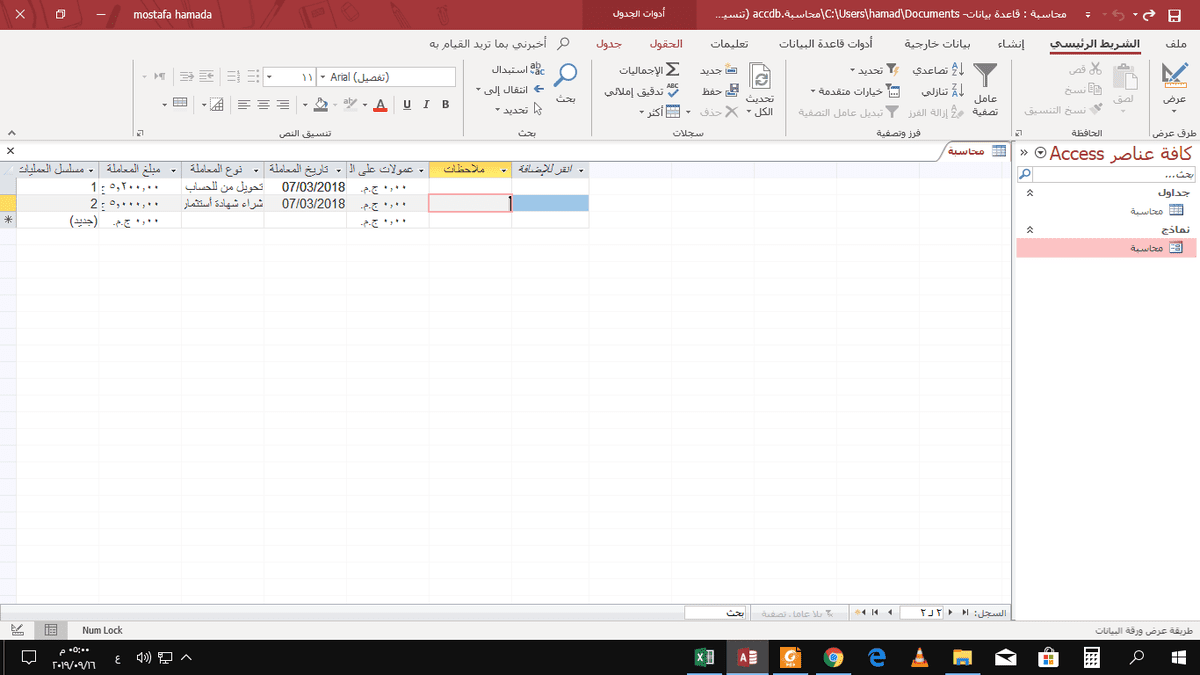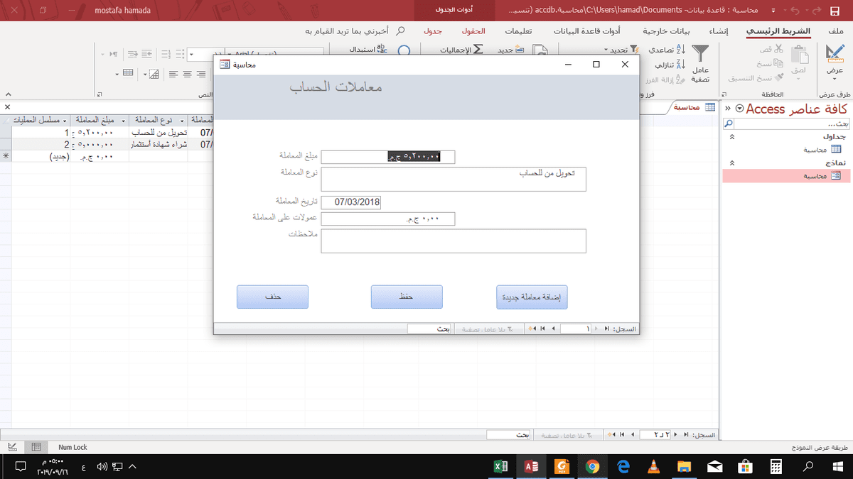 أقوم بعمل قاعدة بيانات بواسطة برنامج مايكروسوفت أكسس فكرته تعمل على إضافة وخصم قيمة عمليات (لنعتبره كمحفظة مالية مبسطة تعتمد على تسجيل العمليات سواءً بالإضافة أو الحذف)