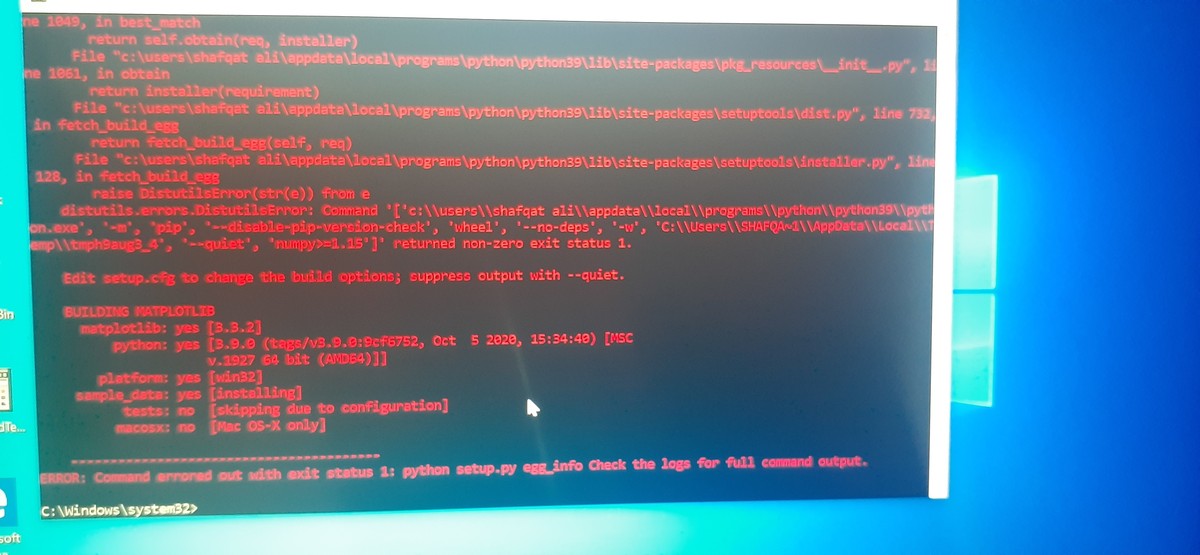 اريد تحميل مكتبة matplotlib ولكن يتم التحميل ثم يظهر خطأ