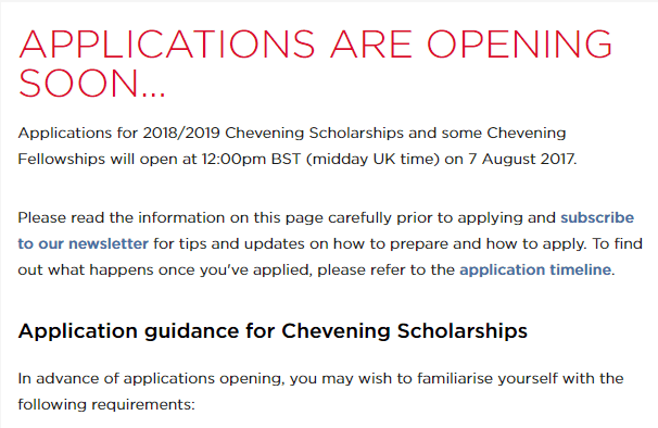 تفتتح هذه الأيام التقديم لمنحة Chevening البريطانية و في ما يلي شروط التقديم فيها