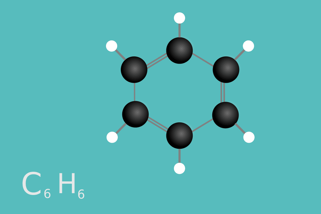 تعتبر جزيئة البنزين من صنف الهيدروكربونات وسبب هذه التسمية أنها تتكون فقط من عنصرين وهما الهيدروجين والكربون وأمثلة على بعض منها البوتان الغاز المستعمل في الطهي وغاز الميثان والبترول أيضا عبارة عن خليط من الهيدروكربونات،وكل جزيئة هيدروكربونية تتبع نظاما في شكلها يعتمد عل الروابط، فجزيئة الكربون عندها أربع إلكترونات في الطبقة الخارجية أي أنها يمكن أن تشكل أربع روابط يمكنك تخيلها كأربع أيدي.