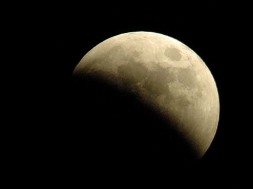 عند خسوف القمر (لما تكون الارض بين الشمس والقمر), يمكنك ان تلاحظ ظل الارض على القمر.