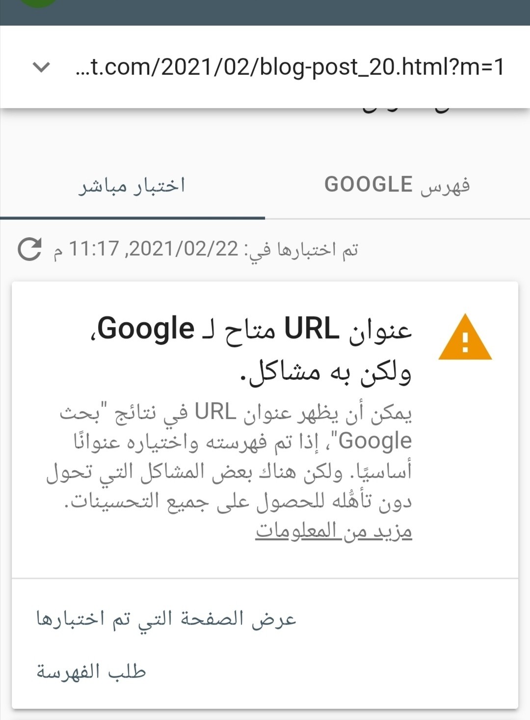 اريد مساعدة في حل مشكلة عنوان URL متاح لـ Google، ولكن به مشاكل عندما اضع رابط مدونتي تضهرلي تلك الرسالة ما العمل لحل تلك المشكلة?