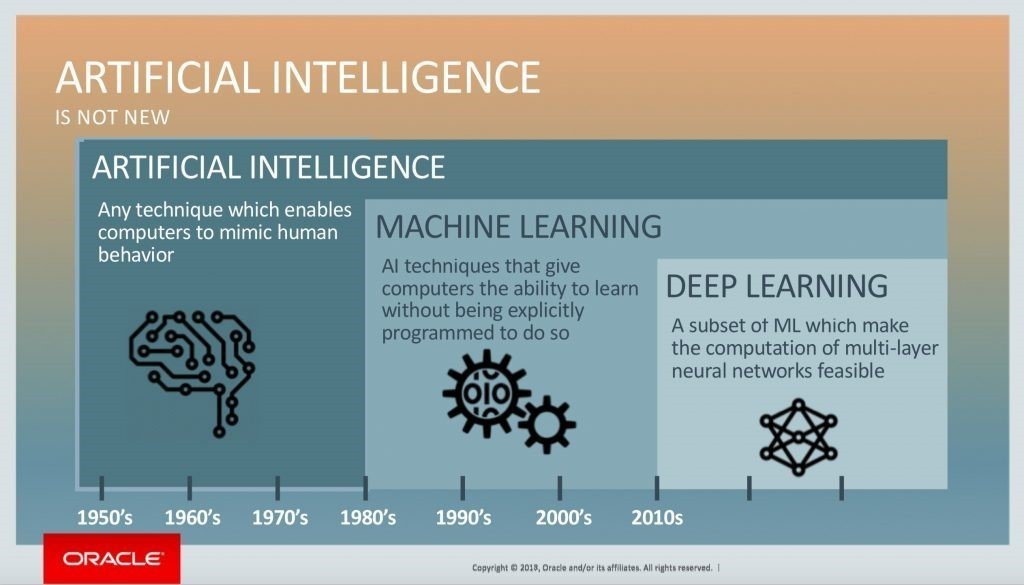 وعندما نلاحظ أن الآلات تقوم مقام الذكاء البشري نطلق عليها مصطلح الذكاء الاصطناعي. لكن إذا شرعت الآلة في تطبيق معادلات معينة لتحصل على مقومات الذكاء الاصطناعي وتنفيذها، فإن ذلك يعرف بالتعلم العميق، وهو ما يعدّ الفرق الأساسي بين هذه المصطلحات الثلاثة.
