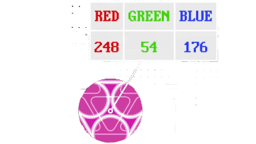 ربما تكون ابسط خوارزمية في الرؤية الحاسوبية هي تتبع جسم ملون ومثال على ذلك نأخذ كرة ملونة زهرية زاهية أول شيء علينا القيام به هو تسجيل لون الكرة للبكسل المركزي RGBلذلك سوف نأخذ قيمة اللون الزهري