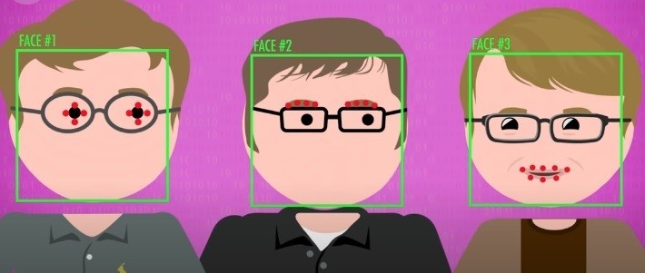 انت تتصرف بشكل مختلف في تلك المناطق المحيطة وكذلك يجب ان تتصرف أجهزة الحوسبة إذا كانت ذكية تلتقط معالم الوجه أيضا هندسة وجهك مثل المسافة بين عينيك وارتفاع جبهتك هذه احدى اشكال البيانات الحيوية ويسمح لأجهزة الكمبيوتر المزودة بكاميرات من التعرف عليها سواء كان هاتفك الذكي يفح تلقائيا عندما يراك او كاميرات مراقبة تتبع الأشخاص او كاميرات البث التلفزيوني