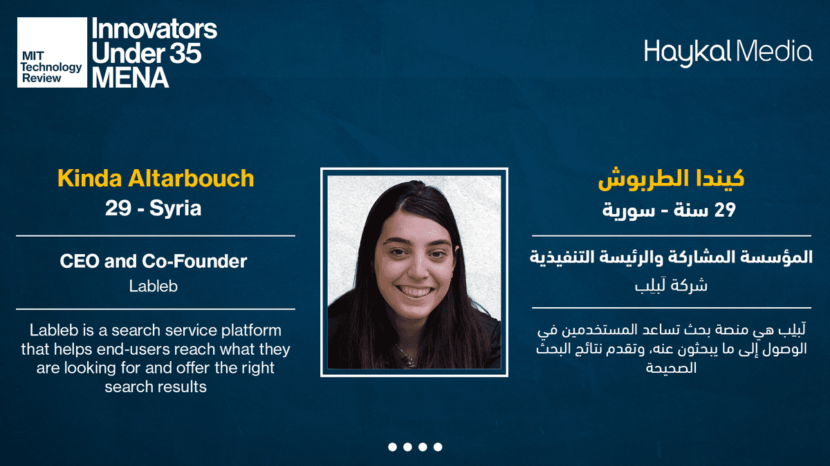 نبارك للسورية كيندا الطربوش فوزَها بجائزة مبتكرون دون 35 من إم آي تي تكنولوجي ريفيو؛ لعملها على إنشاء لَبلِب، وهي منصة توفر خدمة البحث لمساعدة المستخدمين على الوصول إلى ما يبحثون عنه وتزويدهم بنتائج البحث الصحيحة. 🥳