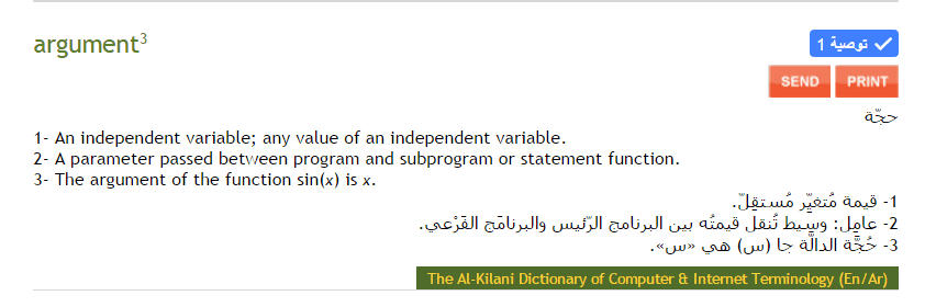 يا رجل لا تترجم حرفيًا، قرأتُ في أحد قوائم ترجمة مصطلحات الحاسوب أنها تترجم معامل/معطى، للملاحظة وجدتُ البعض يخلط بين الـArgument وParameter؛ ما تمرره إلى الدالة هو ما يسمى Argument، هذان الرقمان هنا: