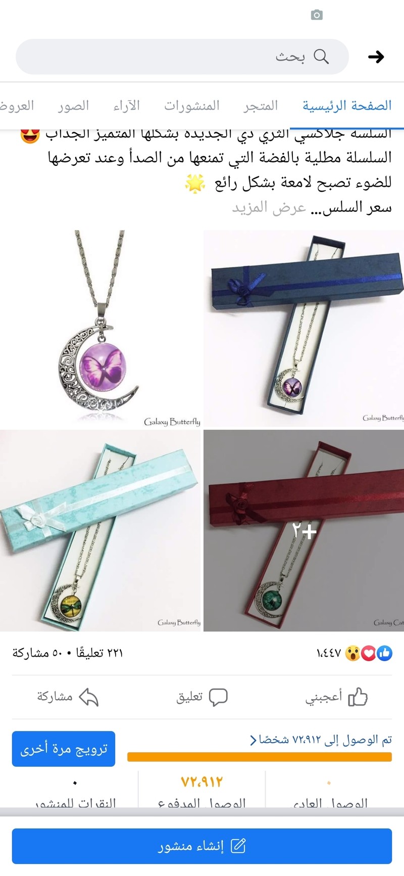 الصفحة انشاء عام2016 مهتمة بمجال البيع اون لاين بها 1090 معجب ومتابع تم تسجيل اكثر من 100الف زائر مطلوب 50$