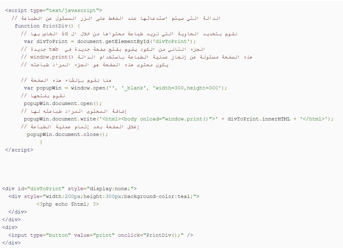 تستطيع من خلالها طباعة جزء محدد من الصفحة باستخدام محددات CSS مثال: