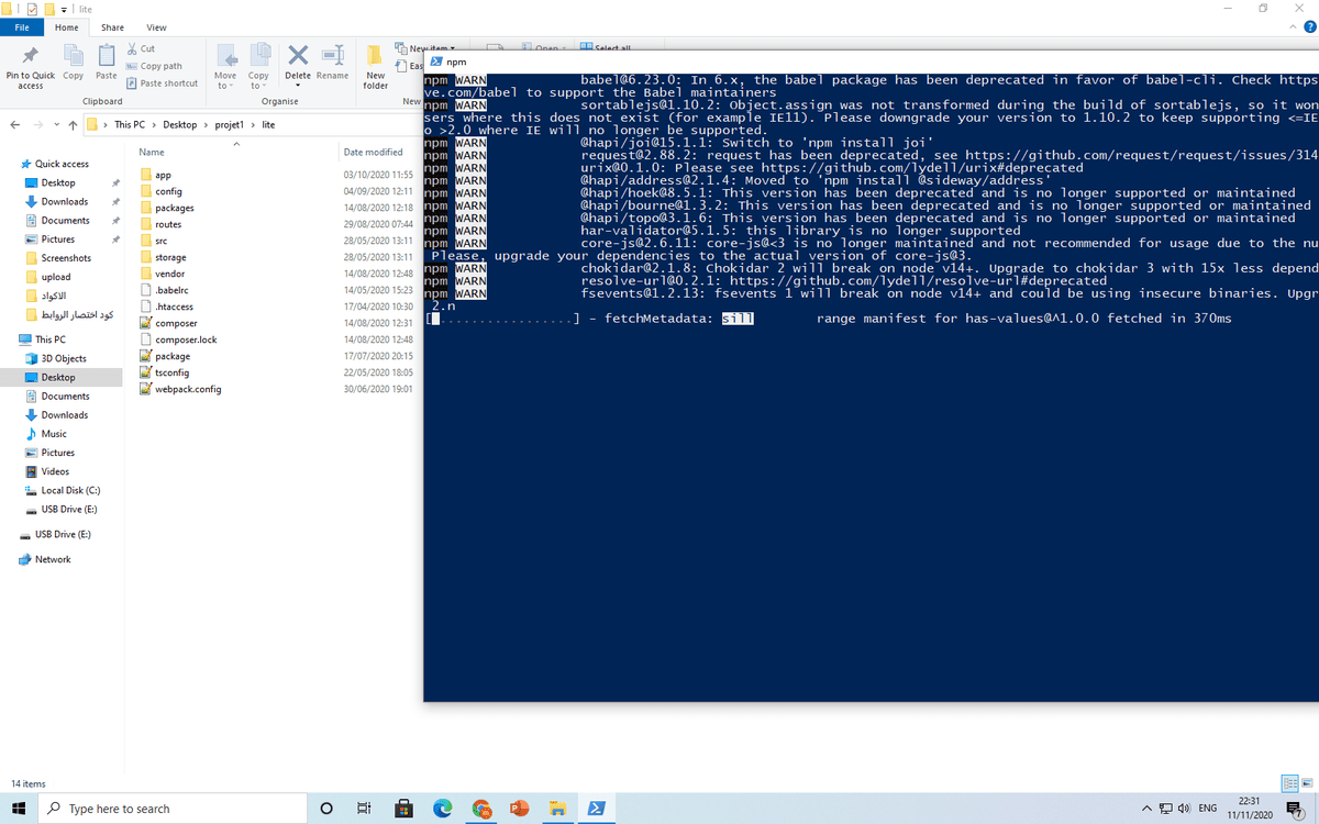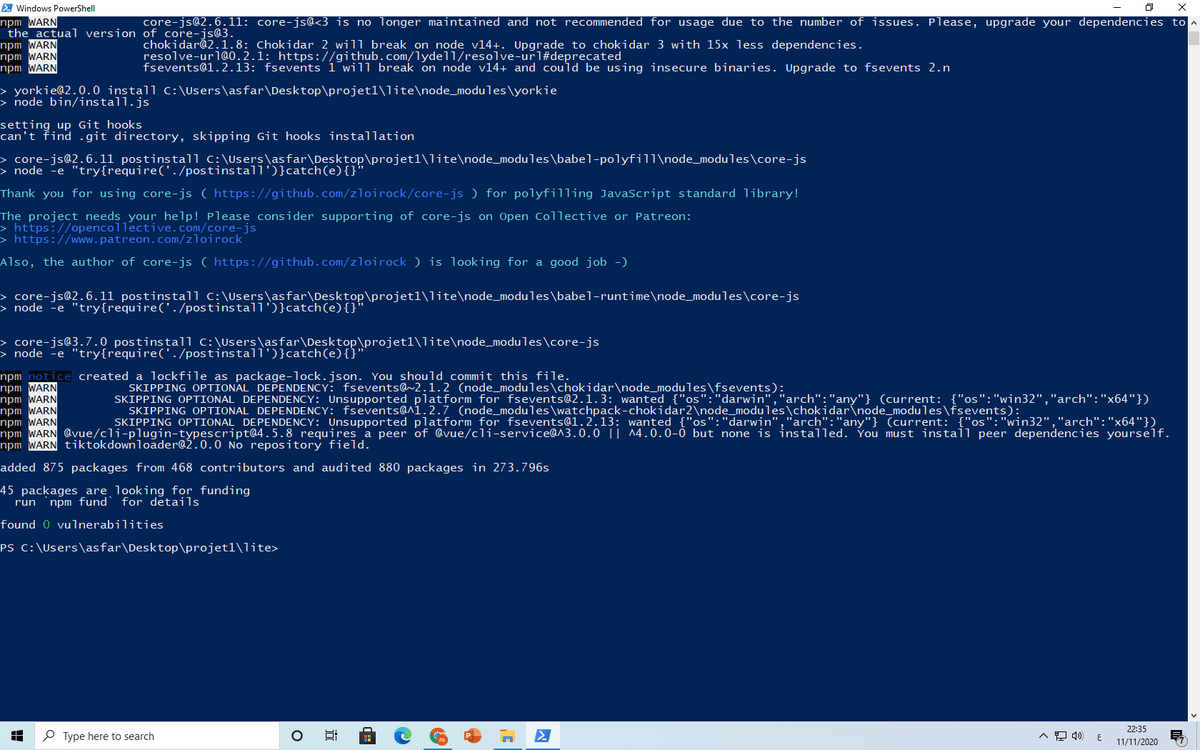 او : npm install --loglevel=error
