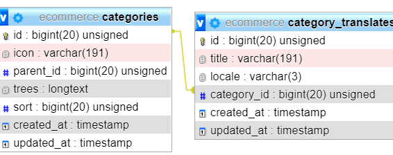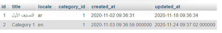 هي إضافة جدول ترجمة لكل جدول يحتاج هذه العملية , وجعل العلاقة one to many أي كل تصنيف مثلاً له عدة ترجمات :