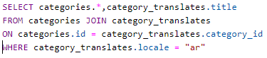 الآن لجلب هذه الترجمات نقوم بسطر Sql بسيط :
