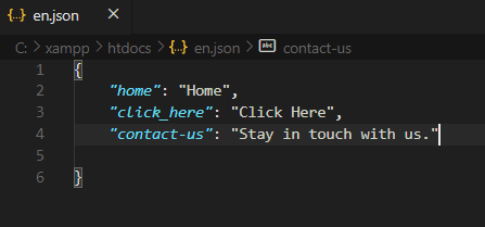 وهذه البيانات من السهل التعامل معها , بجعل ملف json لكل لغة باسمها يحوي كل هذه ال labels و قبل استدعاء أي صفحة نستدعي ملف اللغة المناسب لنستخدمه