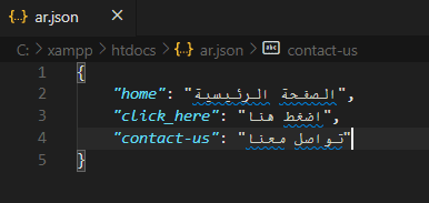 أهم ما يمكن ملاحظته ضمن هذه التعليمة أننا أدخلنا اللغة المختارة من المستخدم (ar) في نهاية التعليمة لجلب الترجمة المرادة.