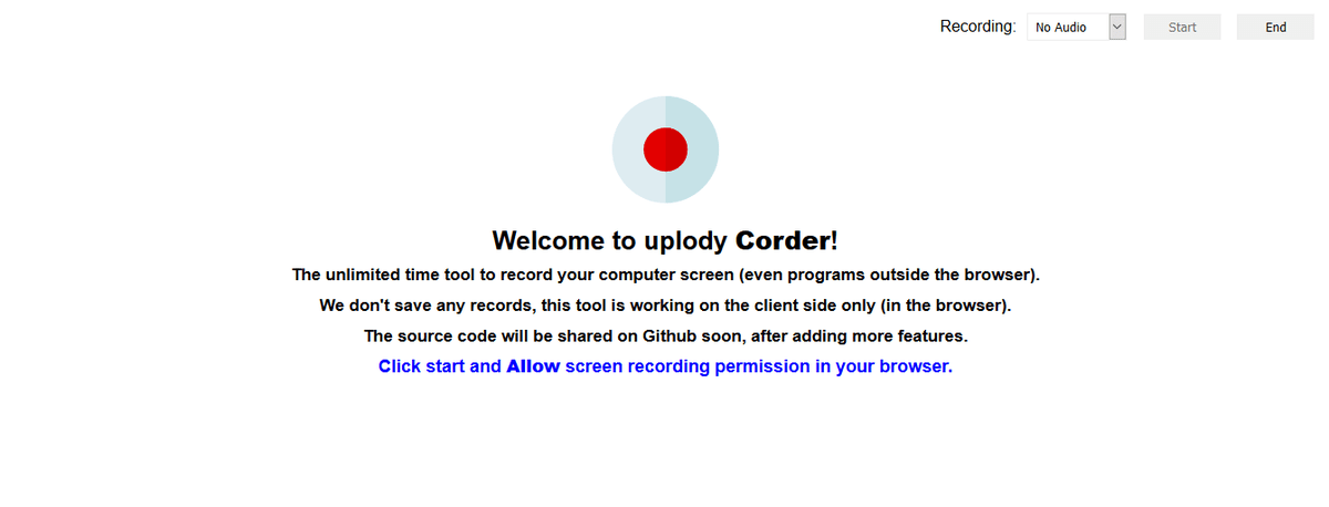 قمت بتطوير أداة باستخدام JavaScript لتصوير شاشة الحاسوب سواء المتصفح أو أي برنامج آخر يعمل على الجهاز مثلاً نافذة برنامج ويندوز محدد. الأداة تدعم تصوير الشاشة مع صوت الميكروفون أو بدون صوت.