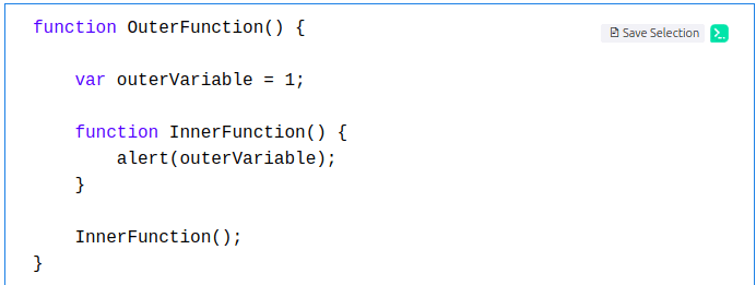 يمكنك ملاحظة تم إنشاء ميثود داخل OuterFunction . فأن ميثود InnerFunction يمكنها استخدام متغير outerVariable .