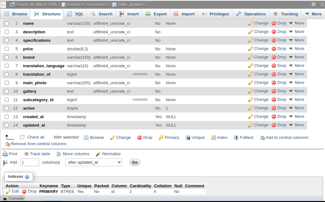 سنجد في أسفل الجدول جدولا أخر صغير باسم indexes أو فهارس سنلاحظ أنه يحتوي على عنصرين الأول لل id والآخر لاسم العنصر الذي يسبب المشكلة.