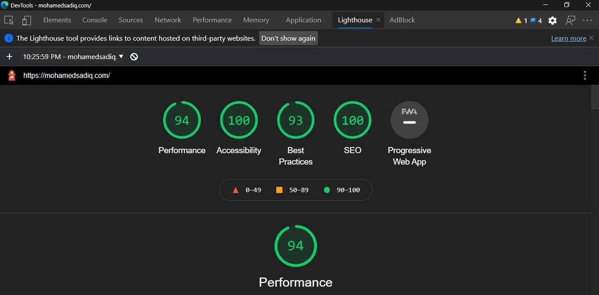 منذو ثلاثة أيام تقريبا أنتهيت من تصميم وتطوير الموقع الخاص بي، كان أول الاعمال التي استخدمت فيها Gatsby js المبنية علي React js، حقيقة تجربة التطوير الخاصة كانت سلسة وجميلة بحق، بالاضافة الي ان النتيجة النهائية الخاصة بالاداء وما إلي ذلك كانت Gatsby js في الموعد. الصور في الاسفل تبين التقنيات التي استخدمتها وكذلك نتائج الاداء الخاصة بأداة قوقل lighthouse، أرحب بأي ملاحظات بخصوص الموقع