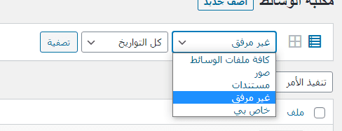 إذا تمت إضافة ملف وسائط بعد ذلك إلى منشور أو صفحة بعد تحميله إلى مكتبة الوسائط ،فهو يعتبر ملف غير مرفق.