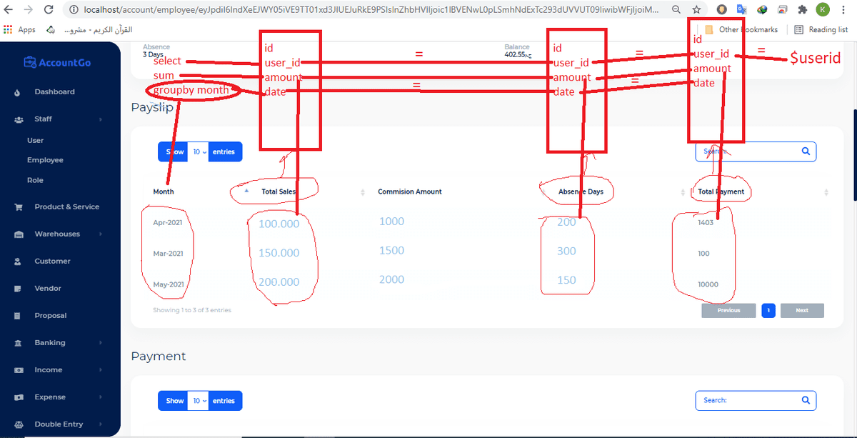 ارجو المساعد فى عمل اتصال بين جداول لارفل كما موضح بالصورة اسفل