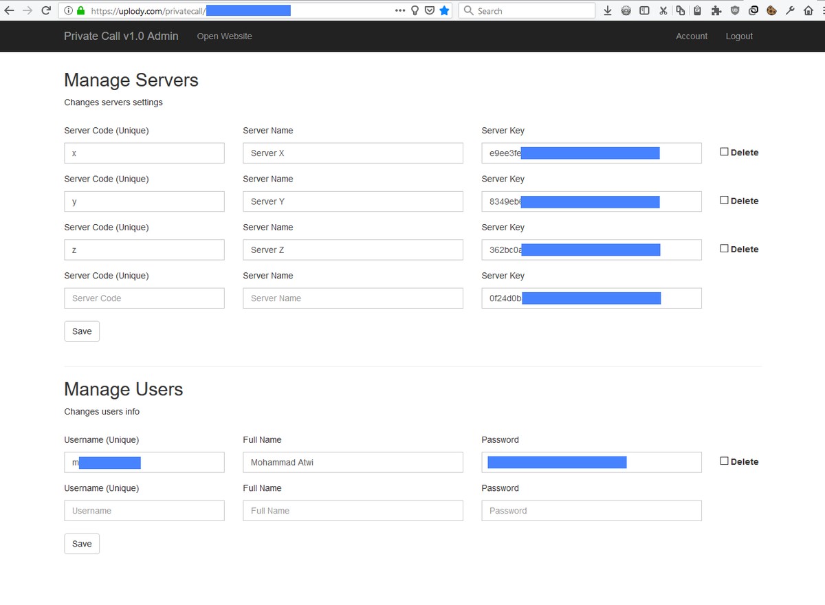 بعد ذلك يتم إضافة مستخدمين من أجل حماية أفضل بحيث لا يستطيع أحد الدخول إلى النظام بدون تسجيل الدخول و من ثم الحصول على الـ open time code الخاص بكل اتصال من الطرف الآخر أو إرسال الكود الخاص به إلى جهة أخرى أي أن المستخدم إما أن يكون "متصل" أو "متلقي".