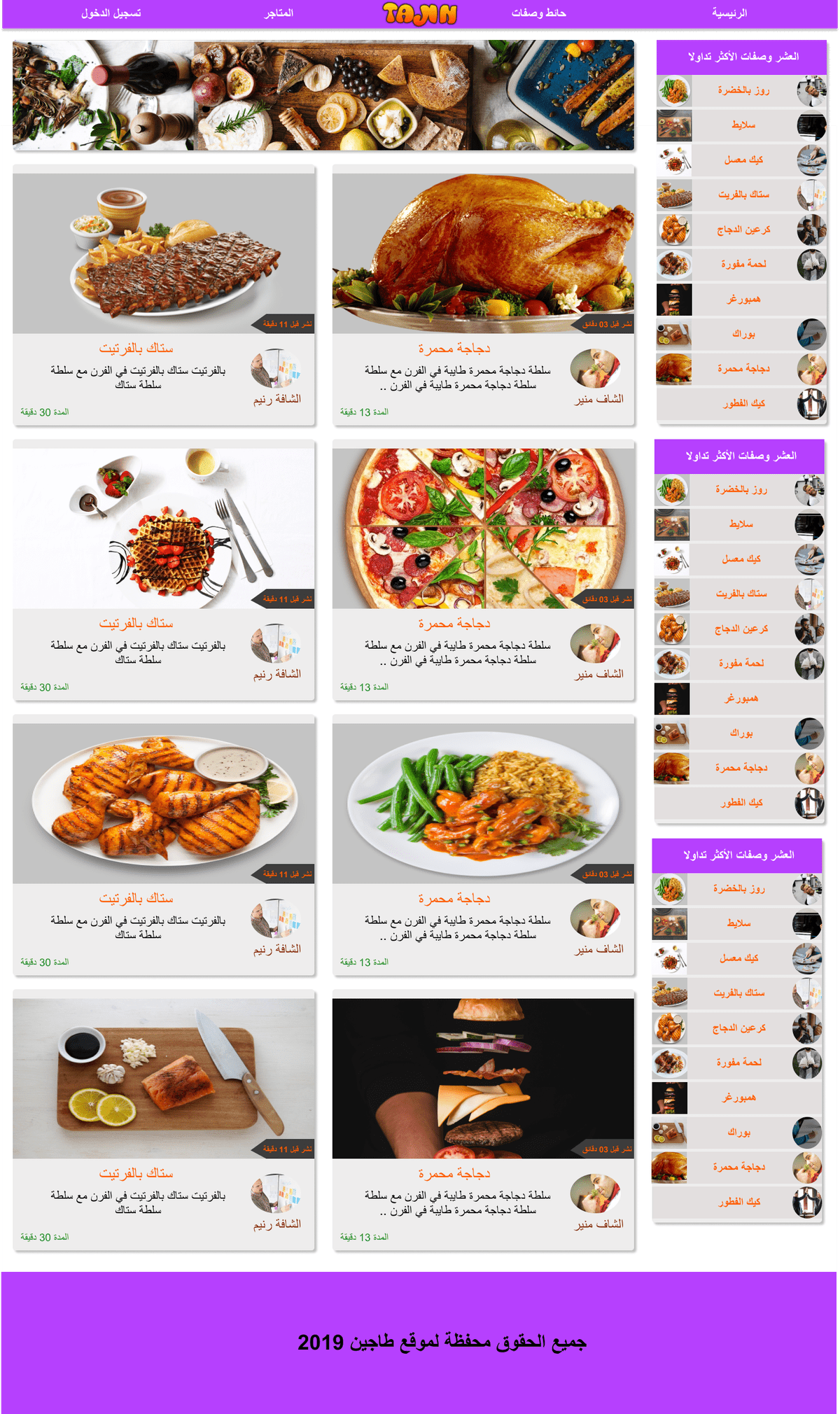 قمت بعمل تصميم لمنصة طبخ .... هذه الصفحة عبارة عن منصة لنشر الوصفات (نسيت أن أضيف زر اللايك و الكومنت للوصفات)... ما هي آراؤكم الأولية من فضلكم .